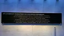 {{cite book}}: CS1 maint: location missing publisher (link) - ↑ "Hans Magnus Enzensberger". Deutschlandfunk (in German). 9 November 2014. Retrieved 27 November 2022.