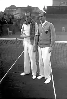 The German team led by Moldenhauer would win that tie against the Italy and also defeated Czechoslovakia in Prague, where Moldenhauer won two rubbers, including the doubles, partnering Prenn.[4] This put Germany into the 1929 European Zone final against Great Britain, which they won 3-2, with Moldenhauer winning a singles rubber over Bunny Austin.[4] They were then whitewashed in the Inter-Zone final by the United States.[4] Moldenhauer lost all three of his rubbers, one of which was against Bill Tilden.[4] It was Moldenhauer's final International Lawn Tennis Challenge appearance, meaning he finished with 14 career wins, from 22 matches.[4]