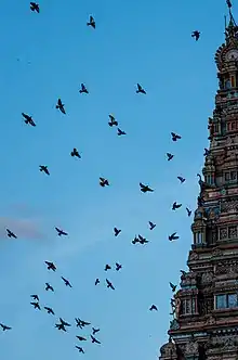 Birds flying at Kumara Swamy Temple in Hanumantha Nagara