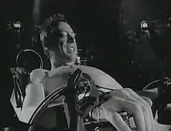 The music video for "Happiness in Slavery", directed by Jon Reiss, was inspired by the 1899 novel The Torture Garden by French author Octave Mirbeau.[2] It features performance artist Bob Flanagan entering a large room, placing a flower and a candle on an altar. He then removes all of his clothing and washes himself before lying down on a machine that straps him in. Long robotic claws arise from the machine and subsequently tear apart his skin and impale his hands. He reacts with pleasure as this occurs. There are also drills that drill into his skin in various places and let his blood drip onto the floor beneath, where there is a garden apparently being fertilized by human blood.