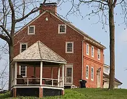 Hard Lodging is a historic home located at Union Bridge, Carroll County, Maryland, United States. It is built on a small cliff overlooking the site where its first owner, Solomon Shepherd, had a mill that is no longer standing. The house was built in three stages: the middle section, a 2+1⁄2-story brick structure, was probably built first; the main section of the house is attached to the west and is a Federal-style, three-by-two-bay, 2+1⁄2-story house with an interior gable-end chimney.[2] Hard Lodging is currently a private residence and is no longer owned by the Historical Society. The home is an example of Pennsylvania German architecture.
