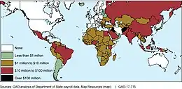 In the terminology of the United States Diplomatic Service, a hardship post is a diplomatic post where living conditions are difficult due to climate, crime, health care, pollution or other factors. Employees assigned to such posts receive a hardship differential of between 10 and 35 percent of their salary.[1] A hardship post with security issues, for example in a war zone, may also be a designated hardship post with employees eligible for additional danger pay.[1]