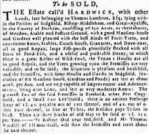 Advertisement for the sale of Hardwick Hall in 1747