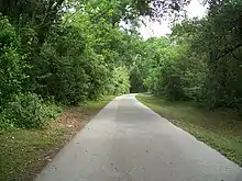 The Hardy Trail is a paved multi-use recreational trail in Dade City, Florida. It is one mile (1.6 km) long and 12 feet (3.7 m) wide. It follows the path of a segment of the Seaboard Air Line Railroad line where it ran through Dade City. This line was originally built between Zephyrhills and Lacoochee by the Florida Central and Peninsular Railroad,[1][2] but was abandoned after SAL merged with the Atlantic Coast Line Railroad to form the Seaboard Coast Line Railroad. It was named after former residents Roy and Martha Hardy, and is used primarily by local residents seeking exercise and recreation. The southern half of the trail is nearly always shaded by the woods through which it runs. A visitor information center is now under construction at the northern end where the trail meets Church Street.