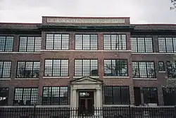 Front of the Harlan and Hollingsworth Office Building.
