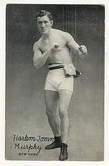 Harlem Tommy Murphy (April 13, 1885 – November 26, 1958) was an American boxer whose career lasted from 1903 to 1917. He was a contender in three different divisions; being ranked in the bantamweight, featherweight and lightweight weight classes.[1] During his tenure as a fighter, he squared off against some of the greatest boxers of all-time, including Abe Attell, Packey McFarland, Terry McGovern, Ad Wolgast and Harry Harris.[2]