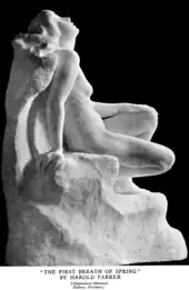 In 1911 the newly married Harold Parker visited Brisbane and was received enthusiastically, but apart from his First Breath of Spring to the Queensland National Art Gallery, sold none of his work. Back in London he received a major commission, two groups of figures outside Australia House: The Prosperity of Australia and The Awakening of Australia.