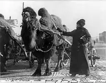 In 1900, Adams went on her first major expedition, a three-year trip around South America with her husband, during which they visited every country, and traversed the Andes on horseback.[2] The New York Times wrote that she "reached twenty frontiers previously unknown to white women."[4] Adams chose practical clothing for her explorations, typically wearing pants, boots, and a man's shirt. During her travels, she focused on the customs, folklore, and languages of the peoples she visited, and lived among them, sharing their sleeping customs and food.[3]