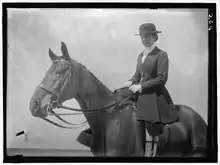 She came from a family with a strong background in horse riding and fox hunting; her uncle W. Austin Wadsworth was Master of the Genesee Valley Hunt.[3] She began riding sidesaddle at age five. She was later diagnosed with scoliosis and the doctor suggested ridding sidesaddle facing the offside (right) of the horse, opposite of the customary position. She rode in this fashion the rest of her life.[4][5]