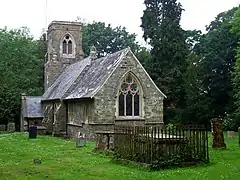 The parish church is a Grade II* listed building dedicated to Saint Mary, dating from the 13th century, and largely rebuilt in 1854-55 by Samuel Sanders Teulon. In the south side of the nave is a tomb containing the 14th-century effigy of a knight in chain mail. Under the tower is the black stone tomb of John Copledike who died in 1557 and his wife who died in 1552. In the chancel is a further tomb to John Copledike who died in 1585 and his wife who died 1582, and an alabaster memorial to Francis Copuldyck and his wife and family dated 1599.[2]