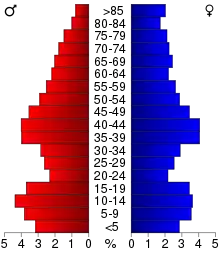 In the county, the population was spread out, with 26.20% under the age of 18, 6.80% from 18 to 24, 27.00% from 25 to 44, 22.30% from 45 to 64, and 17.70% who were 65 years of age or older. The median age was 39 years. For every 100 females there were 96.50 males. For every 100 females age 18 and over, there were 91.80 males.
