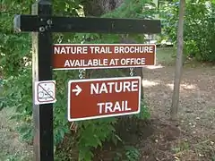 The park features a swimming beach, bathhouse, picnic areas, sports fields, carry-in boat launch, 195 campground sites, cabin, and mini-cabins.[5] The 2-mile (3.2 km) Cedar Run Nature Trail crosses forested areas of the park.[6] A section of beach north of the campers area is pet friendly.[5]
