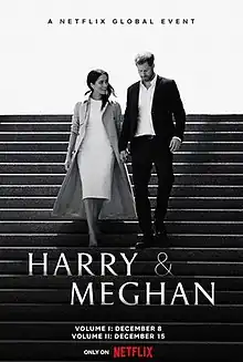 Harry & Meghan is an American documentary series streaming on Netflix, starring Prince Harry, Duke of Sussex and Meghan, Duchess of Sussex. The series has six parts and covers the couple's relationship from their early courtship to their decision to step back as working members of the British royal family and their subsequent activities.[1] It also includes interviews with family, friends, historians, and journalists.[1]