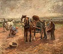 Fidler died at Stoke near Andover in 1935. He has paintings in several public collections including Derby Museum, the Potteries Museum & Art Gallery,[5] Watford Museum, the Smith Art Gallery at Brighouse and the Grundy Art Gallery in Blackpool. Harry and his wife Laura[6] have paintings at Cartwright Hall, the art gallery in Bradford.[2] Laura Fidler died in 1936 and her work has on occasion been wrongly attributed to her husband.[7]