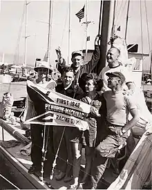 ![]() Harry Nye (bottom right) and crew after winning the Port Huron to Mackinac Boat Race in 1948 | ||||||||||||||||||||||||