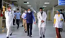 Harsh Vardhan (born Harshvardhan Goel,[1] 13 December 1954) is an Indian otorhinolaryngologist. He had served as the Minister of Health and Family Welfare, Minister of Science and Technology and Minister of Earth Sciences in the BJP-led NDA government of Prime Minister Narendra Modi from 30 May 2019 to 7 July 2021. He represents Chandni Chowk in Delhi as a Member of Parliament in the 17th Lok Sabha. He was elected to the office of chairperson of executive board of the World Health Organization from May 22, 2020.[2] Vardhan has been prominent in the Indian government's response to the COVID-19 pandemic.[3] He later resigned from his cabinet post ahead of the cabinet reshuffle in July 2021.