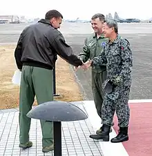 ![]() Kataoka (right) meets with two Generals from the United States Air Force | |
