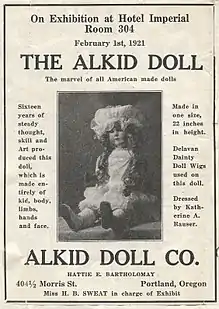 - ↑ “Kid Doll Invention of Former Albany Woman Is Shown.” Albany Evening Herald, Wednesday, December 22, 1920.