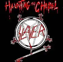 Haunting the Chapel is an extended play (EP) released by American thrash metal band Slayer in 1984 through Metal Blade and Enigma Records. Slayer's debut album Show No Mercy became Metal Blade's highest-selling, leading to producer Brian Slagel wanting to release an EP. Recorded in Hollywood, the recording process proved difficult when recording drums in a studio without carpet, although it resulted in drummer Dave Lombardo meeting Gene Hoglan who was to become an influence in his drumming style and speed.[2] It was during the recording of this session that Lombardo first had the double bass added to his kit. Hoglan, working for Slayer at the time, sat at the kit and played a double bass for the first time. Lombardo was impressed and although Hoglan never gave him lessons, he did give him tips regarding the use of the double kick drum.[3]