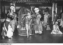 In the Nazi years, the mix of restaurants was modified and the Jewish Kempinskis had to sell the building for a pittance to "Aryans" and leave the country.[29] A 1936 French film, Les Loups entre eux (English title: The Sequel to Second Bureau), features scenes in Haus Vaterland, including "the Horst Wessel song booming from the loud-speaker".[35][36] The business continued to host throngs of customers even after Berlin began to suffer heavy bombing by the Allies. In 1943 the building was damaged, particularly in the central section, in the raid on the night of 22 November that destroyed much of the centre of the city.[37] On 2 February 1945 it was bombed out, only the walls left standing.[29]