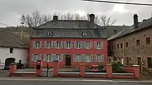 Haus von Orley in Burg Reuland is a baroque mansion built for the Von Orley family from Luxembourg in 1747, as is evidenced by the Von Orley coat of arms and the date of above the entrance door. The house has a broad, symmetrical rendered facade of natural stone. All window and door surrounds are in blue stone. The baroque door frame with the skylight is highly decorated. The vaulted cellars of the building, the inglenook in the kitchen, the fireplace mantles and the panelling possibly originate from a prior dwelling on the same site.[1]