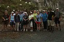 ![]() Bird enthusiasts and members of the Hawaii Audubon Society pose for a photo July 10, 2015 at the Kaneohe Bay Range Training Facility aboard Marine Corps Base Hawaii. Bird enthusiasts and members of the society visited the base for a closer look at the red-footed booby, where a colony of approximately 2,500 birds nest. | |