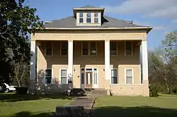 The Hawkins House is a historic house at the northwest corner of 3rd Avenue and 3rd Street in Foreman, Arkansas. It is a 2+12-story wood-frame structure, built in 1912, and is one of the city's few surviving properties from its boom period in the early 20th century, dating to the arrival of the railroad. It is a vernacular Foursquare house, given an L shape by the attachment of a hip-roofed ell to its northwestern corner. Its front elevation is dominated by a two-story recessed porch, supported by concrete block columns.[2]