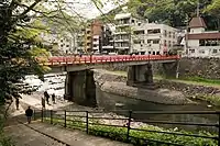 The Haya River (Japanese: 早川 = Hayakawa, literally a fast-flowing river ) is a river that flows in Hakone and Odawara, Kanagawa, Japan. It is a 26 kilometres (16 mi) long river, starting from the Kojiri Water Gate (湖尻水門) at the northern tip of Lake Ashi, gathering rain and hot spring water as it flows in the Sengoku, the Mount Hakone caldera, running down beside the towns of Hakone Hot Springs, and emptying near Odawara Fishing Port (35°14′23.38″N 139°8′50.86″E / 35.2398278°N 139.1474611°E) into Sagami Bay of the Pacific Ocean.