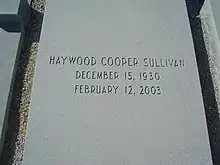 Sullivan then retired to the Gulf Coast of Florida, where he operated a marina and invested successfully in real estate, his name occasionally popping up (usually linked with former Commissioner of Baseball Fay Vincent)[18] as a potential part-owner of another Major League club. Upon Sullivan's death at age 72 in Fort Myers, Florida, after suffering a stroke, Boston baseball observers such as Peter Gammons took a fresh view of Sullivan's impact on the Red Sox and gave him renewed credit for building the team into contenders, and keeping them there, from 1966 forward. Sullivan is interred at the Dothan City Cemetery. He was named to the Boston Red Sox Hall of Fame in 2004.