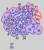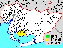 * yellow - areas formerly within the district borders during the early Meiji period