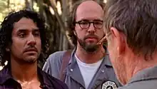 Sayid Jarrah (Naveen Andrews) is in the Dharma Initiative's jail.[N 6] He is questioned by Horace Goodspeed (Doug Hutchison), Dharma's leader; Radzinsky (Eric Lange), Dharma's head of research; and James "Sawyer" Ford (Josh Holloway), who, under the alias of LaFleur, is Dharma's head of security. Sayid does not say anything and is later visited by a twelve-year-old Ben Linus (Sterling Beaumon). Ben's father (Jon Gries) witnesses this and assaults Ben for bringing Sayid food. Sayid is later confronted one-on-one by Sawyer, who in an effort to save Sayid, tries to convince Sayid to give a false confession of being a defector from the island's native population, the Others. Sayid refuses and is subsequently taken to Oldham (William Sanderson), Dharma's resident interrogation expert ("He's our you," as Sawyer describes him to Sayid). Oldham gives Sayid a truth serum which forces Sayid to reveal his knowledge of Dharma's stations, including the future Swan Station, and that he has previously been to the island. However, he also tells them that he is from the future, which discredits his story. Upon returning to the jail, Sayid is once again visited by Ben, who pledges to free Sayid because Ben wishes to join the Others. That evening, several members of the Dharma Initiative take a vote to decide whether to execute Sayid. After an impassioned statement from new mother Amy (Reiko Aylesworth), they all vote in favor of execution. Sawyer attempts to let Sayid escape, but Sayid refuses, stating he has found his purpose for returning to the island.