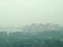 Annually from May to October, Singapore experiences a smoke haze which can cause or worsen pre-existing health issues.[25] The haze is largely caused by, "winds bringing in tiny particles of ash," from the burning of forestry in Indonesia, the neighbouring country.[25] A person's likelihood of developing viral and bacterial infections is increased by breathing in an excess of these particles.[25] Additionally, individuals may experience irritation of the eyes, nose and throat if exposed to an excess amount of the haze.[25] However, in most cases these aforementioned health issues will resolve on their own.[25] The haze can also perpetuates existing heart and lung conditions, such as asthma.[26]