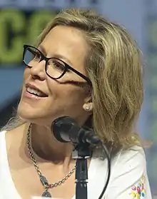 Heather Kadin speaking at the 2018 San Diego Comic-Con International.
