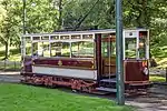 Manchester Corporation Tramways | 765 | Operational | 1914 | This car was built in 1914 and is the only remaining electric tramcar from Manchester in regular operation. It was one of a series of unusual single-deck bogie cars of the combination car type, with a central saloon and open smoking compartments at the ends, built for routes with low bridges. The conversion of these routes to buses in 1930 led to most of these cars being sold, and the body of 765 was acquired by a farm near Huddersfield. In 1960 it passed to a group that was to become the Manchester Tramway Museum Society and restoration work started. It has operated at Heaton Park since 1979.[10][11][12]