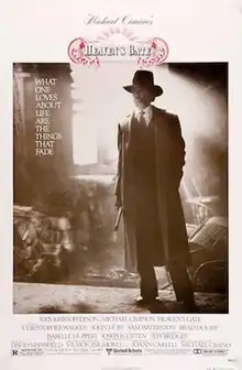 In subsequent years, some critics have come to the film's defense, beginning with European critics who praised it after the film played at the Cannes Film Festival.[6][46] Robin Wood was an early champion of Heaven's Gate and its reassessment, calling it "one of the few authentically innovative Hollywood films ... It seems to me, in its original version, among the supreme achievements of the Hollywood cinema."[47][48] David Thomson calls the film "a wounded monster" and argues that it takes part in "a rich American tradition (Melville, James, Ives, Pollock, Parker) that seeks a mighty dispersal of what has gone before. In America, there are great innovations in art that suddenly create fields of apparent emptiness. They may seem like omissions or mistakes at first. Yet in time we come to see them as meant for our exploration."[49] Martin Scorsese has said that the film has many overlooked virtues.[50] Some of these critics have attempted to impugn the motives of the earliest reviewers. Robin Wood noted, in his initial review of the film, reviewers tended to pile on the film, attempting to "outdo [one an]other with sarcasm and contempt."[47] Several members of the cast and crew have complained that the initial reviews of the film were tainted by its production history and that daily critics were reviewing it as a business story as much as a motion picture.[6] In April 2011, the staff of Time Out London selected Heaven's Gate as the 12th greatest Western of all time.[51] While Peter Biskind covered the many excesses and problems with the movie in his book Easy Riders, Raging Bulls, he also noted that Heaven's Gate was not dissimilar to other big-budget, troubled projects of the late 1970s and early 1980s (such as Steven Spielberg's 1941 and Warren Beatty's Reds), and that the backlash against Heaven's Gate could have easily been directed elsewhere. Biskind speculated that Michael Cimino's personal unpopularity was the main reason this film became so widely reviled. Philip French praised the film in his original review.[52]