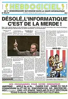 Hebdogiciel was a French computer magazine which was published from 1983 until January 1987.[1][2] It was printed in a newspaper style format and focused on 8- and 16-bit home computers of the time, such as the Commodore 64, ZX80, TI-99/4A, and others.