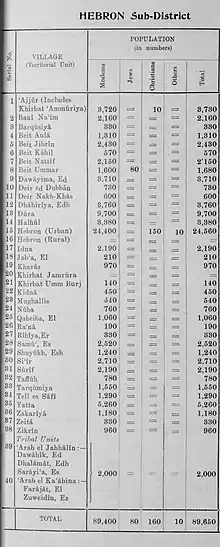 | Hebron Subdistrict قضاء الخليل נפת עזה | |||||||||||