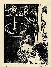 H.G. with a Bottle in her Hand and Potter's wheel, 1953