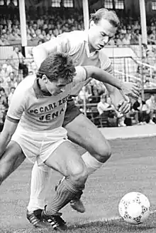 ![]() Heiko Weber (front) in a duel with Frank Wriedt (FC Hansa Rostock) in 1988 | |||