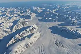 Heimdal Glacier (Danish: Heimdal Gletscher) is a glacier in southeastern Greenland. It flows into the head of the Timmiarmiut Fjord system of the King Frederick VI Coast,[1] northwest of the island of Timmiarmiit. Its name derives from Heimdallr, a deity of Norse mythology.