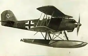 Initial deliveries of the He 60 were to Kriegsmarine training units in June 1933.[4] From 1934, the major production version, the He 60C began to be delivered to the shipboard observation seaplane units of the Kriegsmarine, operating from the catapults of all German cruisers.[5] It also saw action with Spanish Nationalist forces during the Civil War.[1]