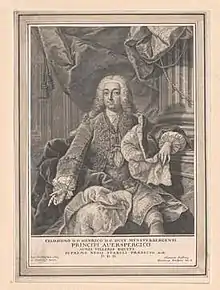 Heinrich Joseph Johann von Auersperg (24 June 1697, Vienna – 9 February 1783, Vienna) was the fourth Prince of Auersperg, and one of the longest reigning monarchs in history. He was successively Grand Master of the Court, Grand Equerry and Grand Chamberlain at the Viennese court. During his reign Duchy of Münsterberg and Frankenstein, the Silesian dominions of the Auerspergs, came under Prussian rule.
