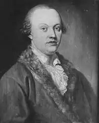 He had planned to complete his studies in Paris, but on his way there, he stopped in Frankfurt to paint a portrait of the diplomat, Johann Karl Philipp von Cobenzl, who was pleased with the results and recommended him to the Elector, Johann Friedrich Karl von Ostein. He was also pleased, and appointed him a court painter with an annual salary of 600 Florins, plus food and lodging.[4] He remained there through 1760. In addition to his court work, he accepted apprentices for training.