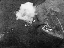 Ehrler was already airborne when he realized that his radio transmitter was not working.[41] Unable to communicate with his command center nor with the other pilots, he was unsure in what direction to fly. He decided to continue flying to Alta. At 09:30, Oberleutnant Werner Gayko, the commander of 9. Staffel, finally took off, followed by the other aircraft. At 09:42, Ehrler reached the vicinity of Storsteinnes when he observed to his left a distant mushroom-shaped cloud and anti-artillery bursts.[45] He then decided to head towards the smoke before heading west, hoping to cut off the bombers. He searched the coast heading northeast and southwest, and then to Malnes and to the vicinity of Heia before finally flying to Alta.[46] When it finally became clear that the target was the Tirpitz, it was too late for the fighters to intercept, and the Tirpitz was destroyed with much loss of life. 9. Staffel also did not find the bombers and returned to Bardufoss airfield.[47]