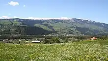 The Heinzenberg area extends for about 10 km from south to north, and is bounded on the west by the Heinzenberg Ridge and on the east by the Posterior Rhine. The slope rises very gently (with a 15 to 20 percent grade), especially in the southern part, and offers good conditions for agriculture. There are meadows and pastures around the villages and on the lower slopes, and fields and fruit trees. Higher up the slopes, there is a zone with Maiensässes. Above 1,800 m above the sea, Alpine meadows can be found. Duke Henri of Rohan praised the diverse landscape exuberantly as "the most beautiful mountain in the world".