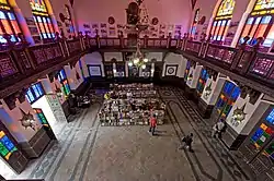 The station's interior has a beautiful decorated ceiling. The actual platforms of the station are closed.[5]
