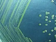 ![]() Gram negative Shigella sonnei bacteria which spent 48 hours cultured on Hektoen enteric agar (HEK). | |