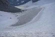 Helen Glacier is located east of the Continental Divide in the northern Wind River Range in the US state of Wyoming. The glacier is located in the Fitzpatrick Wilderness of Shoshone National Forest, and is among the largest grouping of glaciers in the American Rocky Mountains. Helen Glacier flows to the east from a cirque to the northeast of Mount Helen.[2]