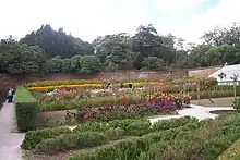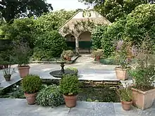 The northern part of the gardens, which includes the main ornamental and vegetable gardens, are slightly higher than the house and slope gently down to it. The areas of the gardens to the west, south, and east of the house slope steeply down into a series of valleys that ultimately drain into the sea at Mevagissey. These areas are much wilder and include the Jungle and the Lost Valley.[3]