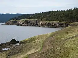 The park has large old-growth Douglas-fir trees and rare Garry oak ecosystems. A trail loops around the bluffs that overlook the Strait of Georgia and links-up with Tribune Bay. The Garry oak meadow ecosystem is one of the many microclimates located within British Columbia and is considered an endangered habitat.[5]